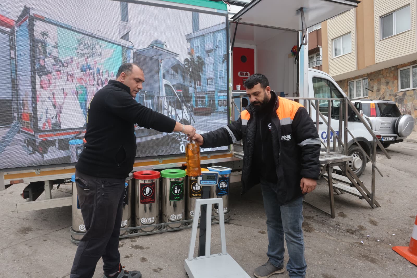 Canik Belediyesi’nin hizmete sunduğu Mobil Sıfır Atık Aracı ise mahalle mahalle dolaşarak vatandaşların atıklarını yerinde topluyor. Atık teslim eden vatandaşlara “CanAtık” mobil uygulaması üzerinden nakit iade ya da alışveriş puanı tanımlanıyor.