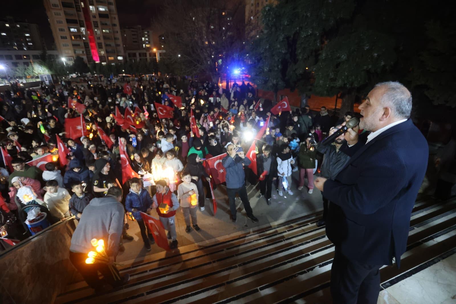 Canik Belediyesi öncülüğünde; Canik Kaymakamlığı, Canik İlçe Milli Eğitim Müdürlüğü ve Canik İlçe Müftülüğü iş birliğiyle düzenlenen programda, 7’den 70’e vatandaşlar ellerinde fenerlerle yürüyüşe katıldı. Fener alayı, Canik Kuzey Yıldızı Ortaokulu önünden başlayarak Kuzey Yıldızı Mahallesi’ndeki Yeşilova Camii’nde sona erdi.