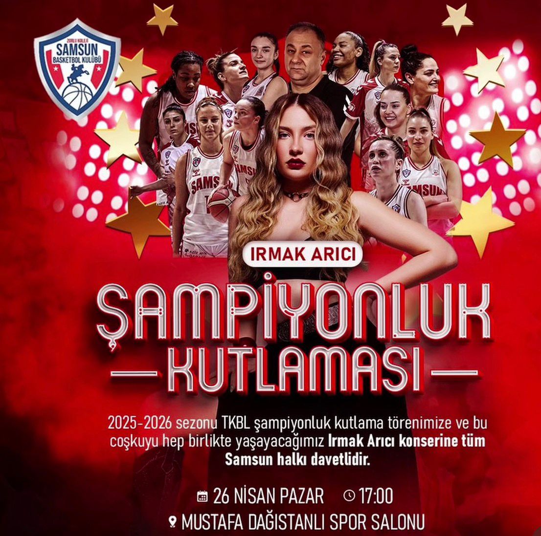 Saat 17.00’de başlayacak organizasyonda, kupa töreninin ardından sahne alacak olan Irmak Arıcı, sevilen şarkılarıyla taraftarlara unutulmaz anlar yaşatacak. Spor ve eğlencenin bir araya geleceği etkinlikte, “Kuzeyin Perileri”nin başarısı büyük bir coşkuyla kutlanacak.