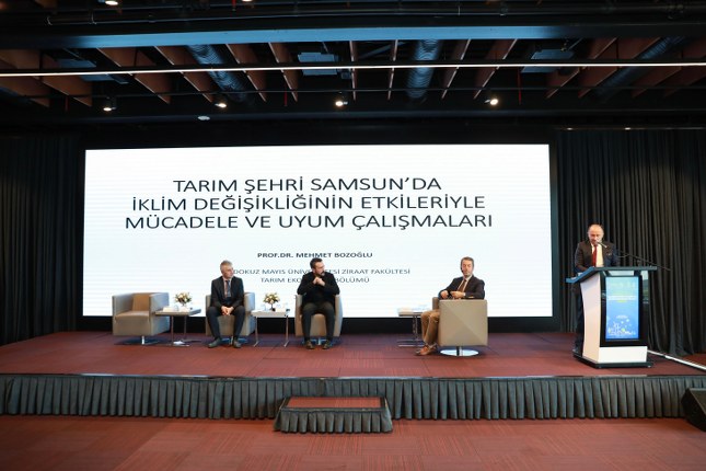 Programın ilk oturumunda “İklim Dirençli Kent Vizyonu” ele alındı. Panelin moderatörlüğünü Prof. Dr. Bahtiyar Öztürk üstlenirken, OMÜ Mimarlık Fakültesi Dekanı Prof. Dr. Mehmet Çetin “İklim Baskısı Altında Kentleşme ve Yeşil Alanların Korunması” konusunu aktardı. Prof. Dr. Mehmet Bozoğlu ise “Tarım Şehri Samsun’da İklim Değişikliğiyle Mücadele ve Uyum” başlıklı sunum yaptı. Büyükşehir Belediyesi Afet İşleri Dairesi Başkanı Cemal Bozkurt da AFAD’ın iklim değişikliği uyum çalışmaları hakkında bilgi verdi.